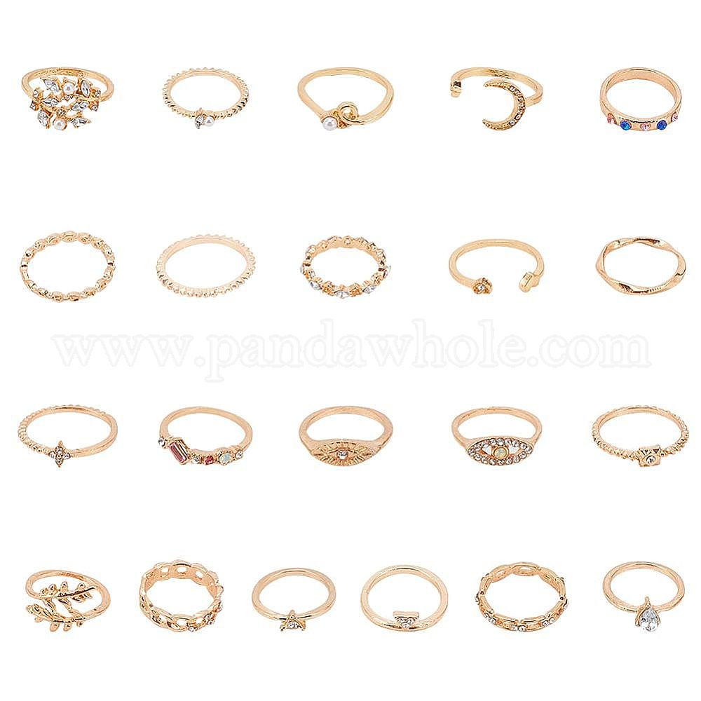21 шт. 21 стили прямоугольные и конские глаза и слезы и листья и луна и звезды и сердца сплава пальцев кольца, штабелируемые кольца для женщин