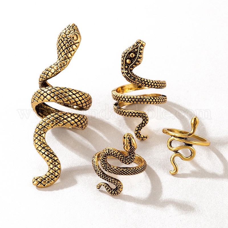 4 шт. 4 набор колец на палец из сплава в стиле, змея