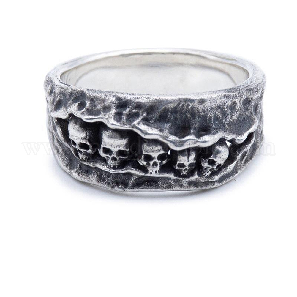 • Античное Серебро Хэллоуин ювелирные изделия, широкие кольца из сплава для мужчин, череп, античное серебро, внутренний диаметр: 18.5 мм