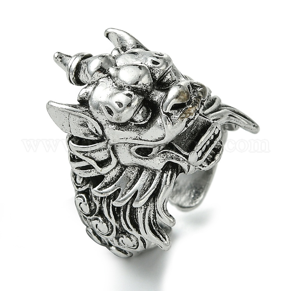 • Античное Серебро Открытые манжеты из сплава дракона, без свинца и без кадмия, античное серебро, 20 мм, внутренний диаметр: регулируемый
