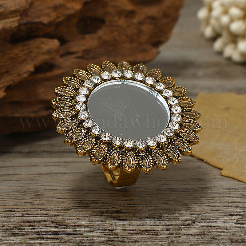 Регулируемые кольца из сплава в стиле ретро с цветочным узором и стразами, винтажные этнические кольца