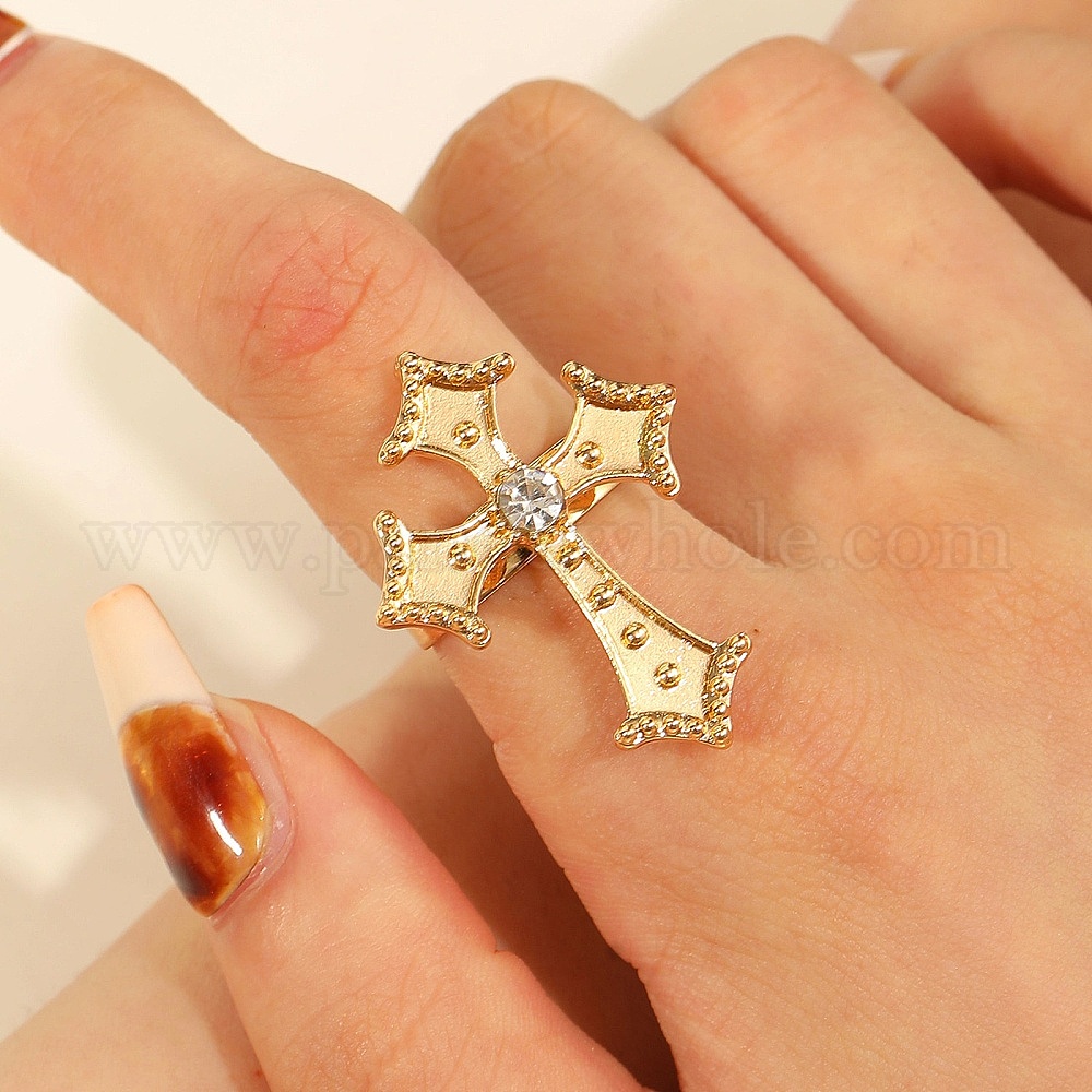 Регулируемые кольца для женщин из сплава со стразами, крестик