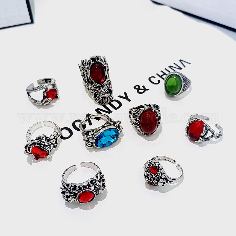 Ретро сплав с регулируемыми манжетами из смолы, античное серебро