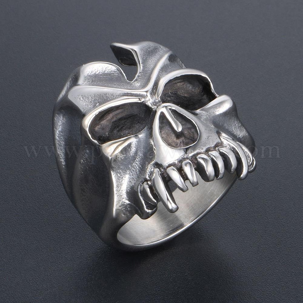 • Античное Серебро Кольца-манжеты из сплава для мужчин на Хэллоуин, череп, античное серебро, 26.5x22 мм, внутренний диаметр: 18.8 мм