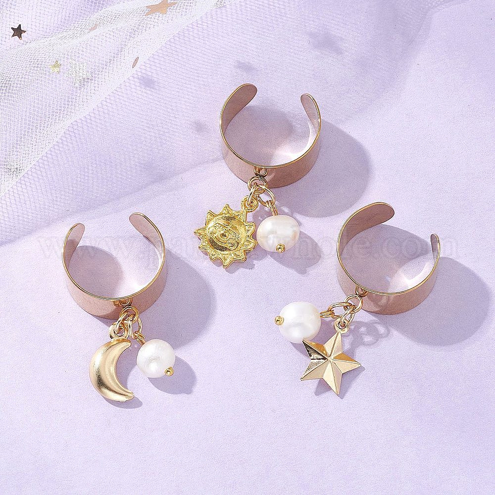 304 Кольца-манжеты из нержавеющей стали и сплавов для женщин, с натуральным культивированным пресноводным жемчугом