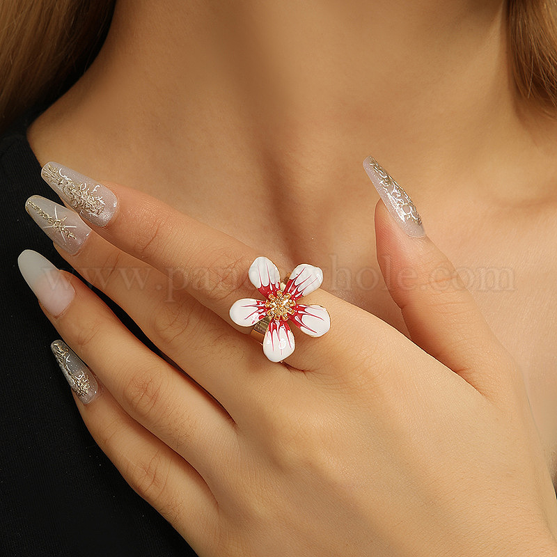 Эмалированные кольца-манжеты из сплава для женщин, цветок, золотые
