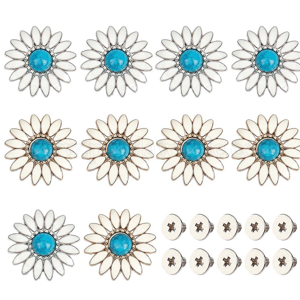 10 наборы 2 цвета цинковый сплав эмалированные кнопки, с синтетической бирюзой и железными винтами, для кошелька, , украшение кожаных ремесел, подсолнечник
