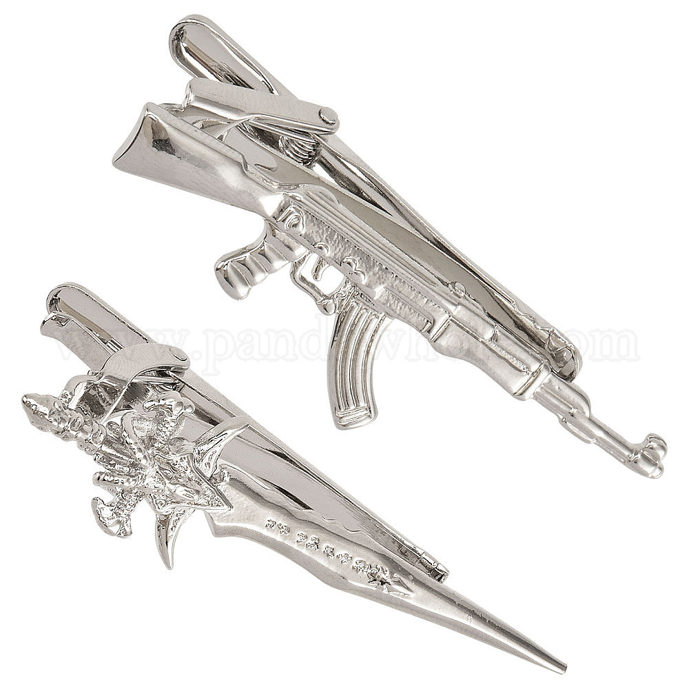 • Платина 2шт 2 стиль латунный зажим для галстука, с подвесными цепочками булавки для воротника зажимы для галстука, меч/пистолет, платина, 15.5~16x59~59.5x22.5~23 мм, 1 шт / стиль