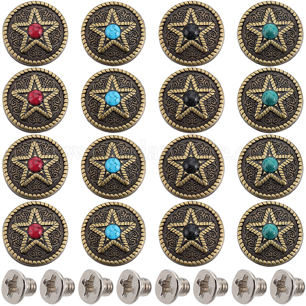 16 наборы 4 цвета литые кнопки, с имитацией смолы синтетической бирюзы и винтами, аксессуары для поделок, полукруглый со звездой