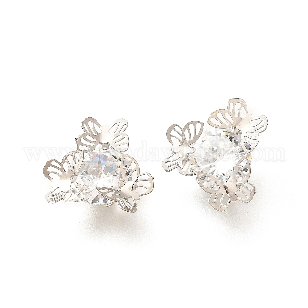 Латунные кнопки с микропаве из прозрачного кубического циркония, долговечный, без кадмия и без свинца, бабочка