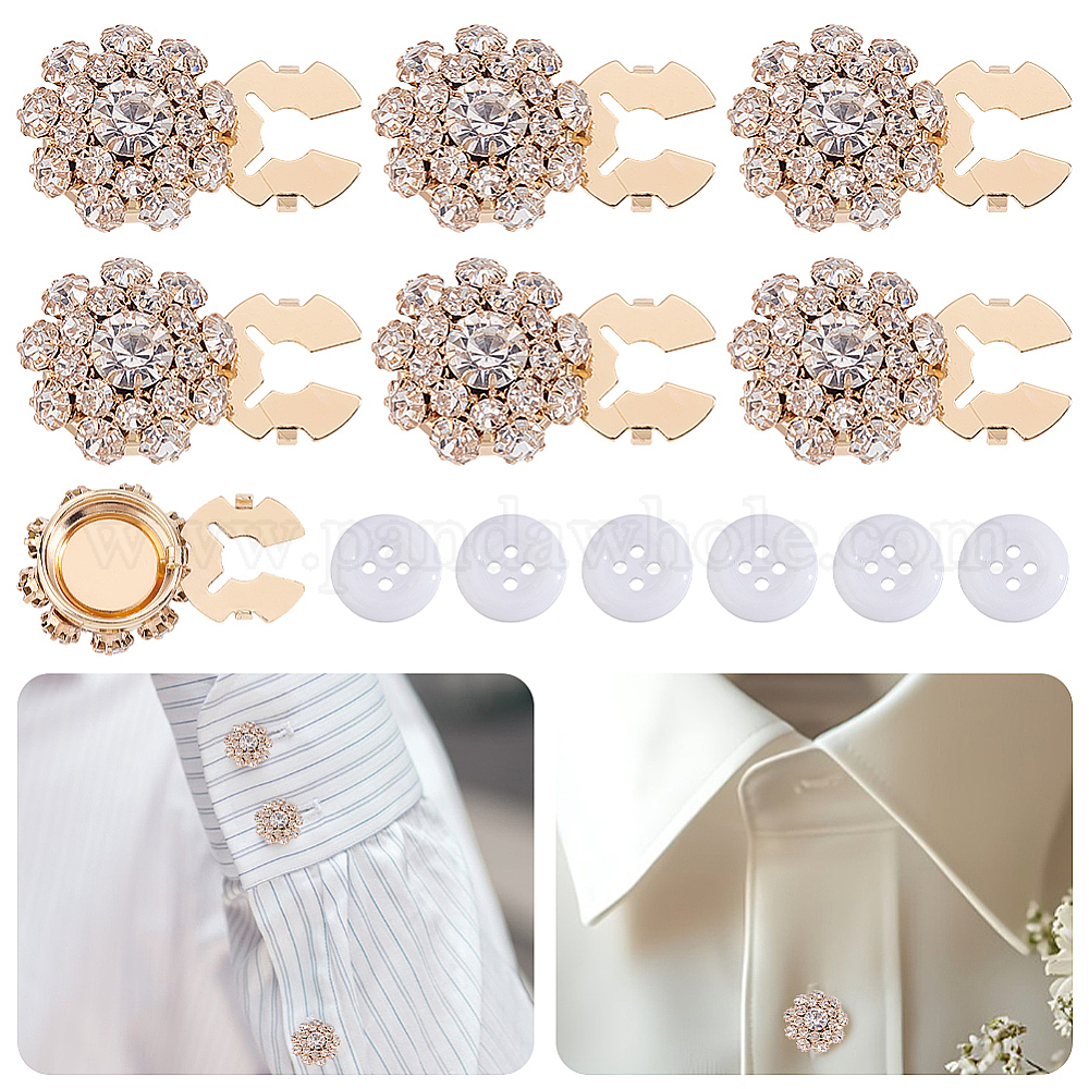 1 застежка-кнопка со стразами из сплава с отверстием, с акриловыми пуговицами для рубашки