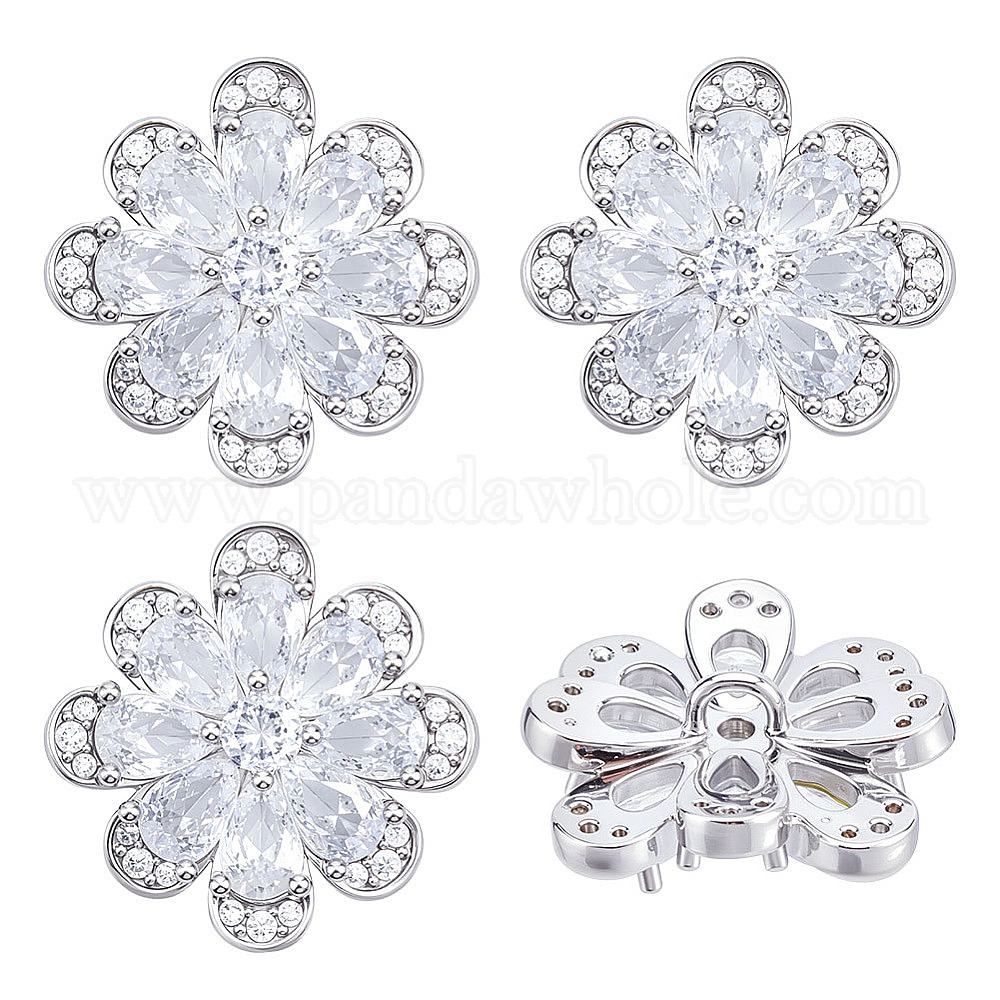 4 шт. 1 латунные пуговицы с прозрачными кубическими циркониями, паве, цветок