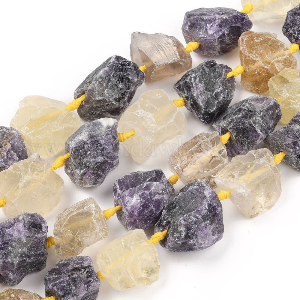 Грубые необработанные нити натурального аметиста и лимонного кварца, самородки