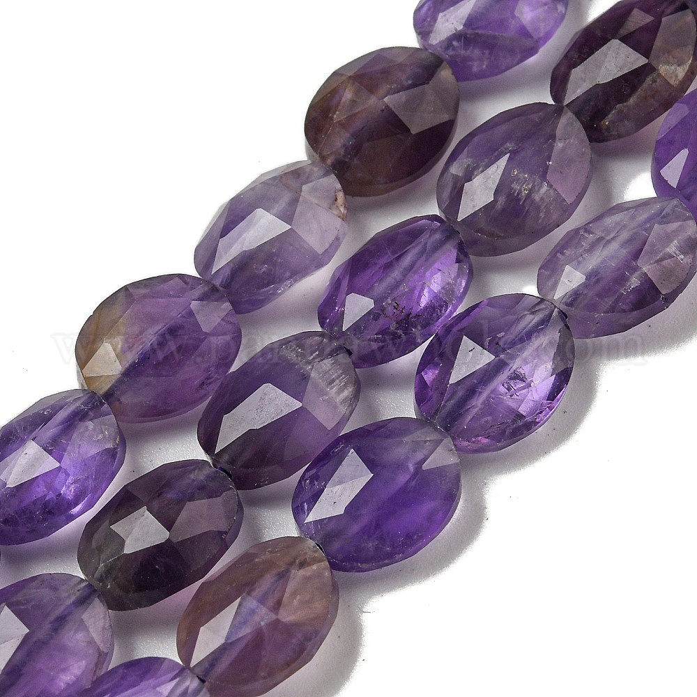 Природный аметист нитей бисера, граненые, Плоско-овальные