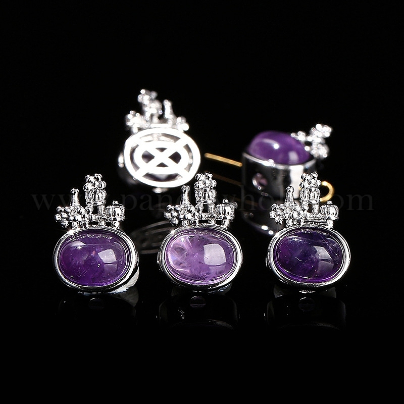 Природный аметист бисера, со сплавочной фурнитурой, овальные