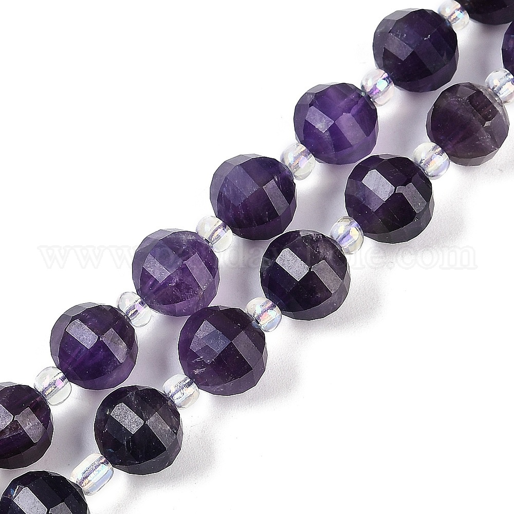 Природный аметист нитей бисера, граненые, фонарь, с бисером