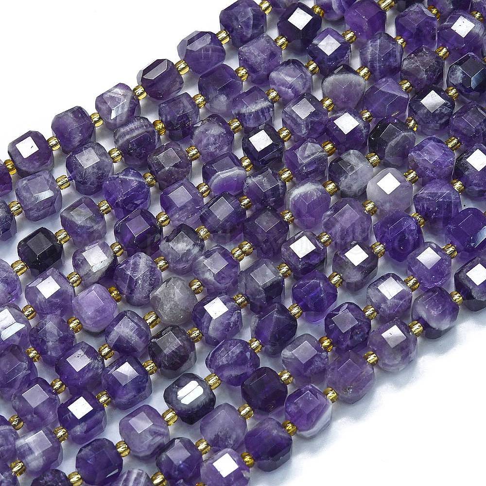 • Аметист Природный аметист нитей бисера, с бисером, граненый стол, вырезанный куб, 8~9.3x8~9.3x8~9.3 мм, отверстие : 0.6 мм, около 38 шт / нитка, 15.35'' (39 см)