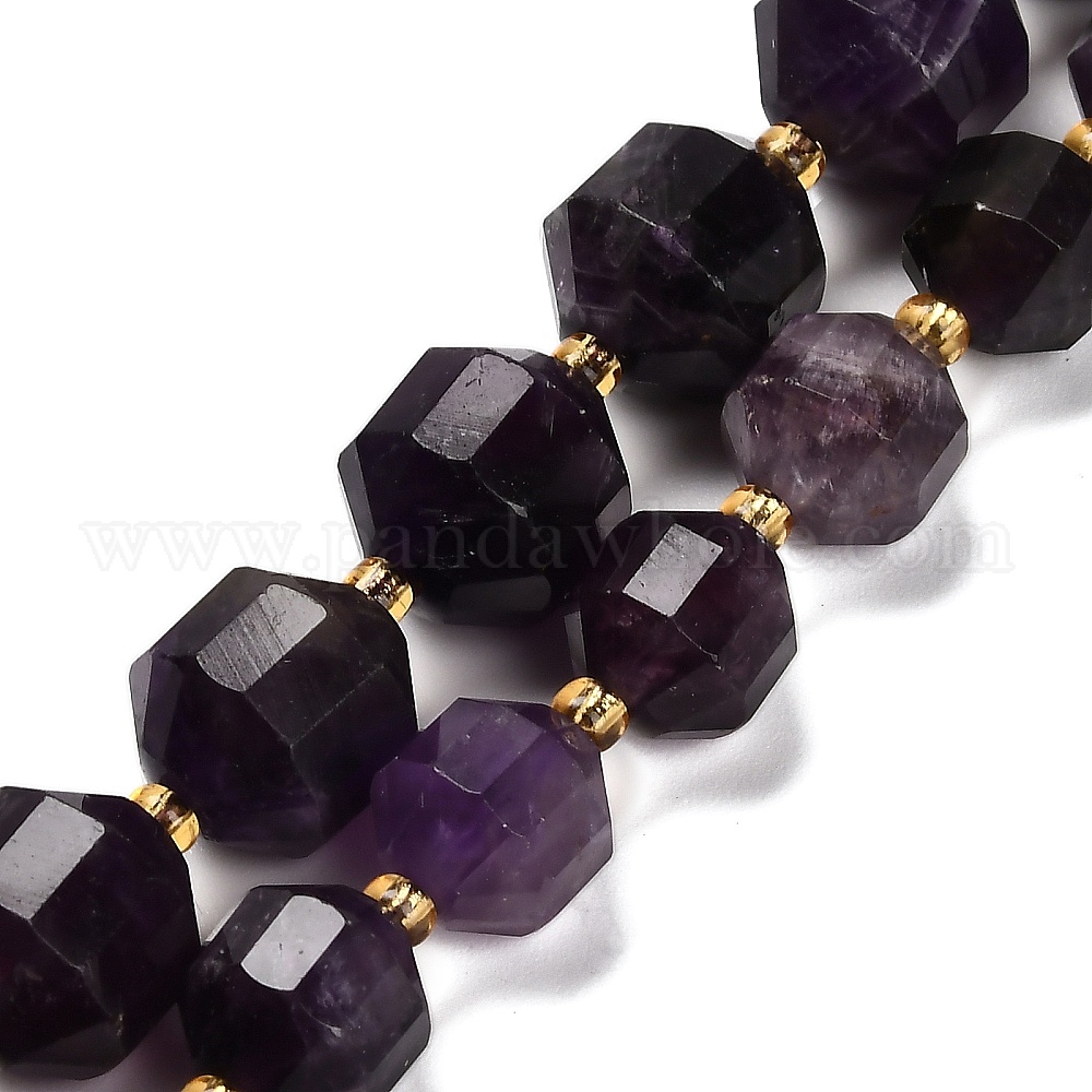 Природный аметист нитей бисера, граненые, двухконусные, точечные призмы с двойным концом, с бисером