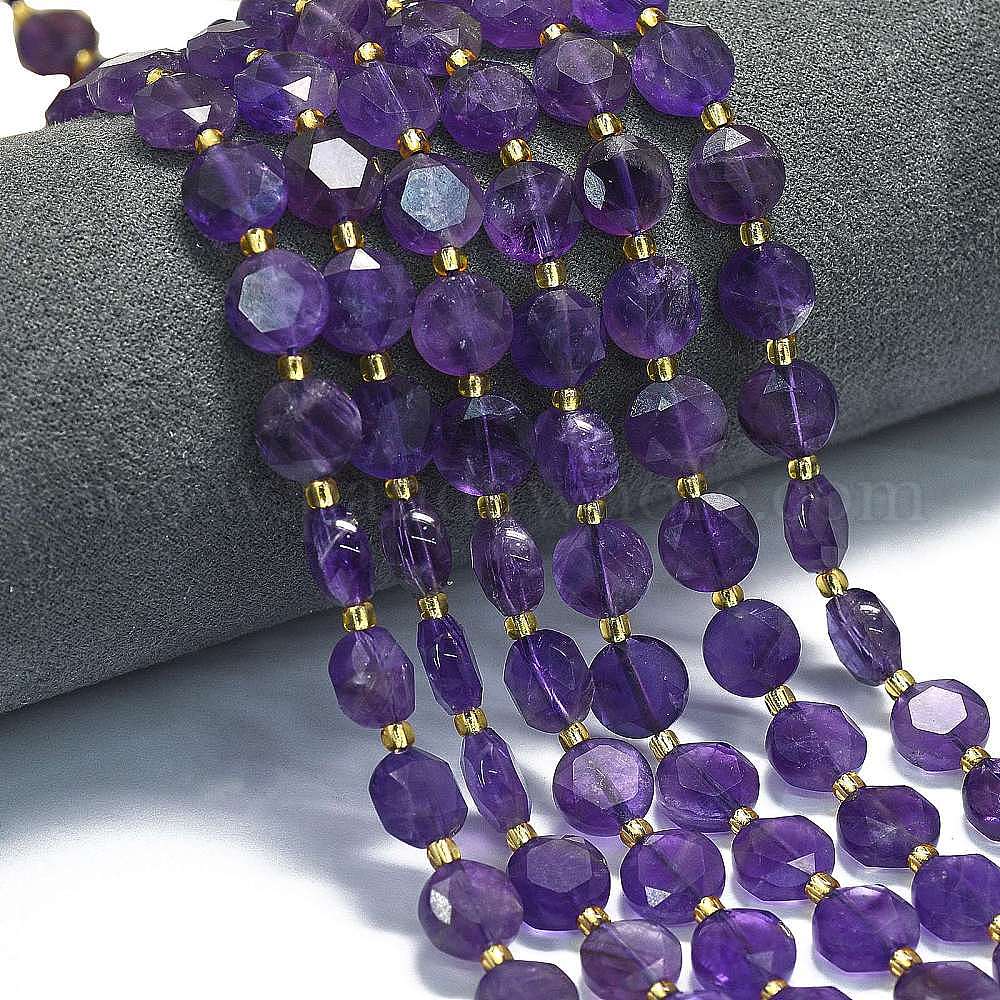 Природный аметист нитей бисера, граненый шестиугольный разрез, плоско-круглые, с бисером