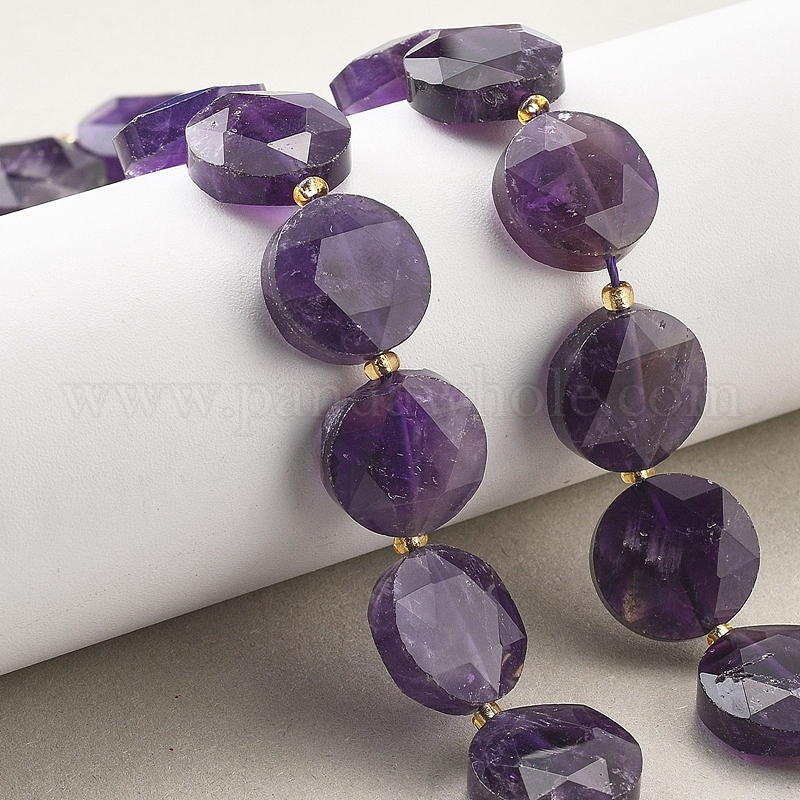 Природный аметист нитей бисера, граненый шестиугольный разрез, плоско-круглые, с бисером