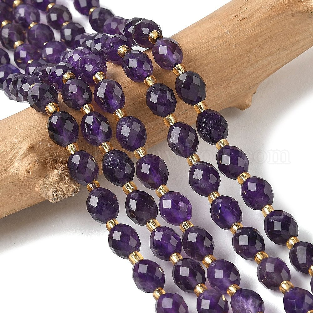 Природный аметист нитей бисера, граненые, рис, с бисером