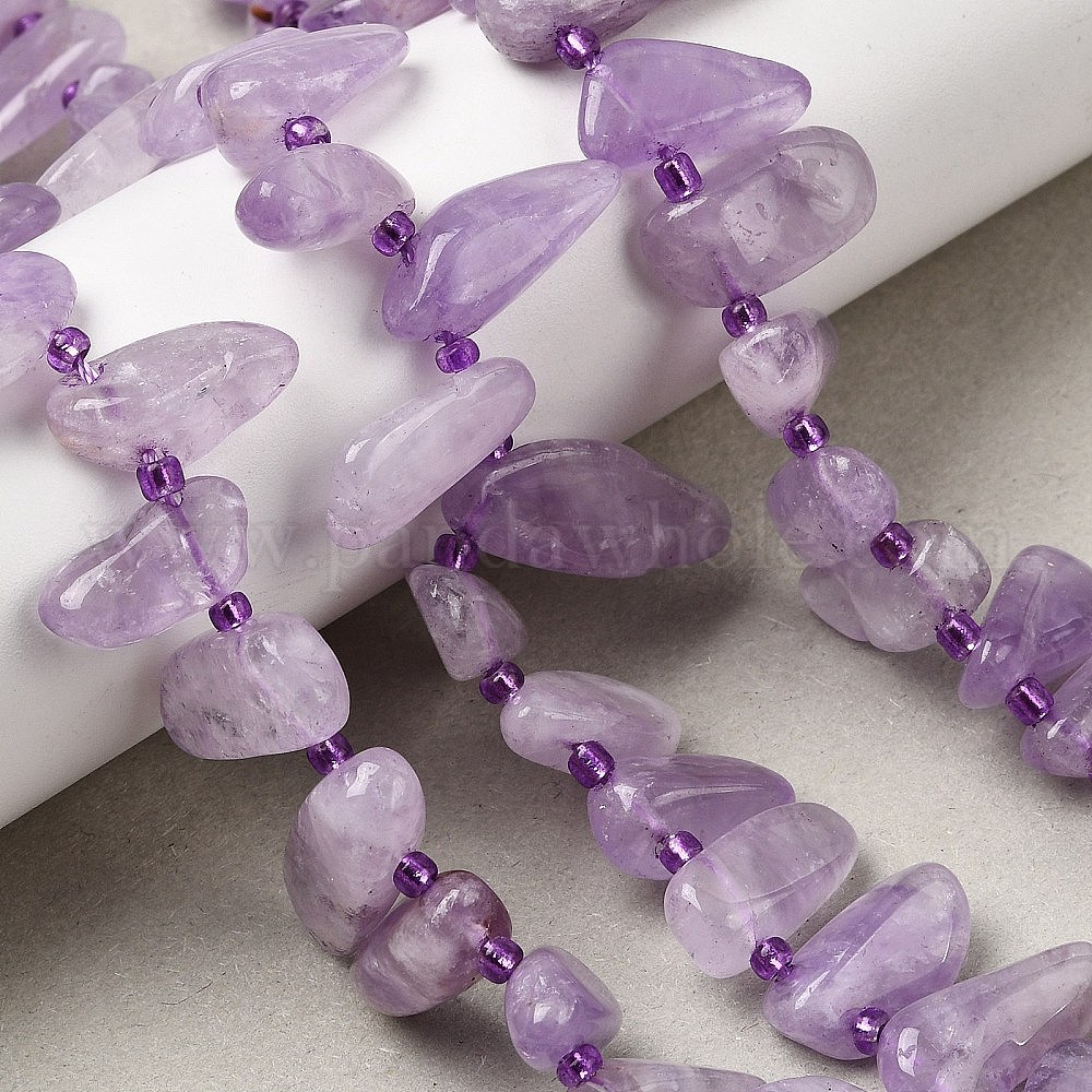 • Аметист Нити бусин из натурального лавандового аметиста, Топ пробуренной, самородки, с бисером, 10~27x4~8x7~11 мм, отверстие : 0.9 мм, около 42~43 шт / нитка, 15.35~15.55'' (39~39.5 см)