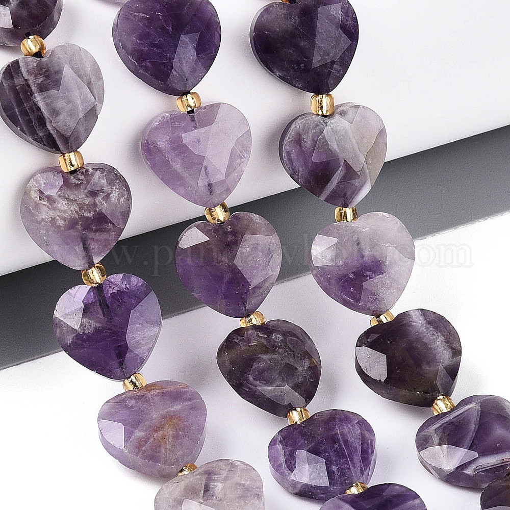 Природный аметист нитей бисера, граненое сердце, с бисером