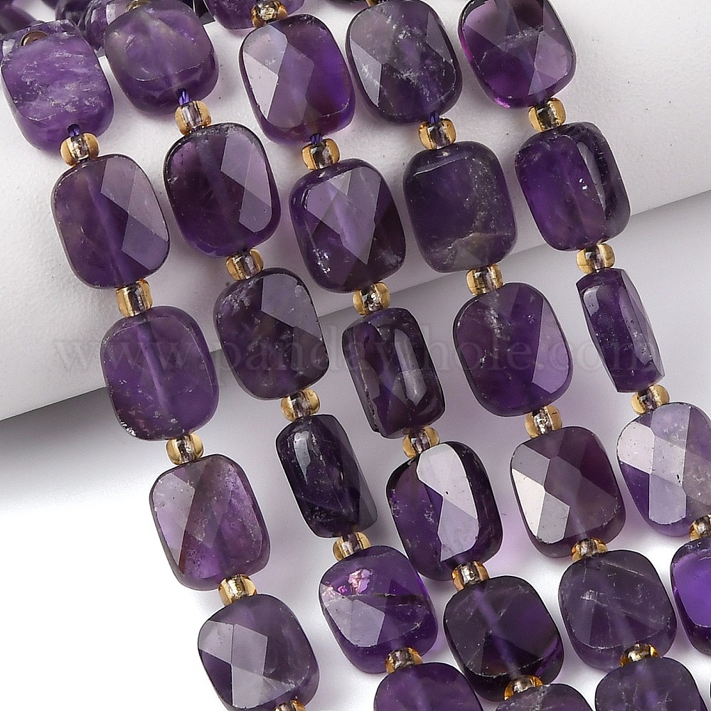 • Аметист Природный аметист нитей бисера, прямоугольные, граненые, с бисером, 10x8~8.5x4.5~5 мм, отверстие : 1 мм, около 31 шт / нитка, 14.57'' (37 см)
