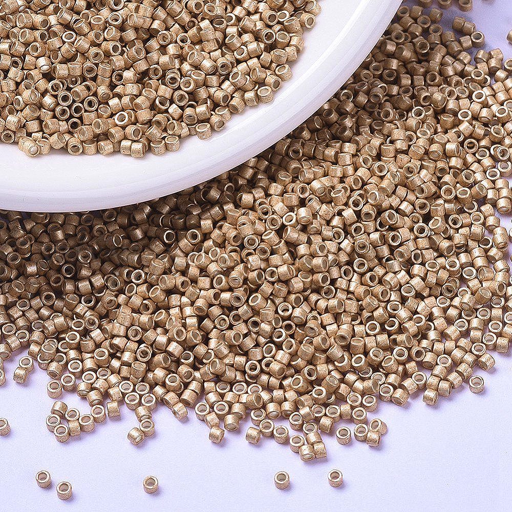 • (DB1152) Гальванический Полуматовый Шампанскый Бусины miyuki delica, цилиндр, японский бисер, 11/0, (дБ 1152) шампанское оцинкованное полузамороженное, 1.3x1.6 мм, отверстие : 0.8 мм, Около 100000 шт / 500 г