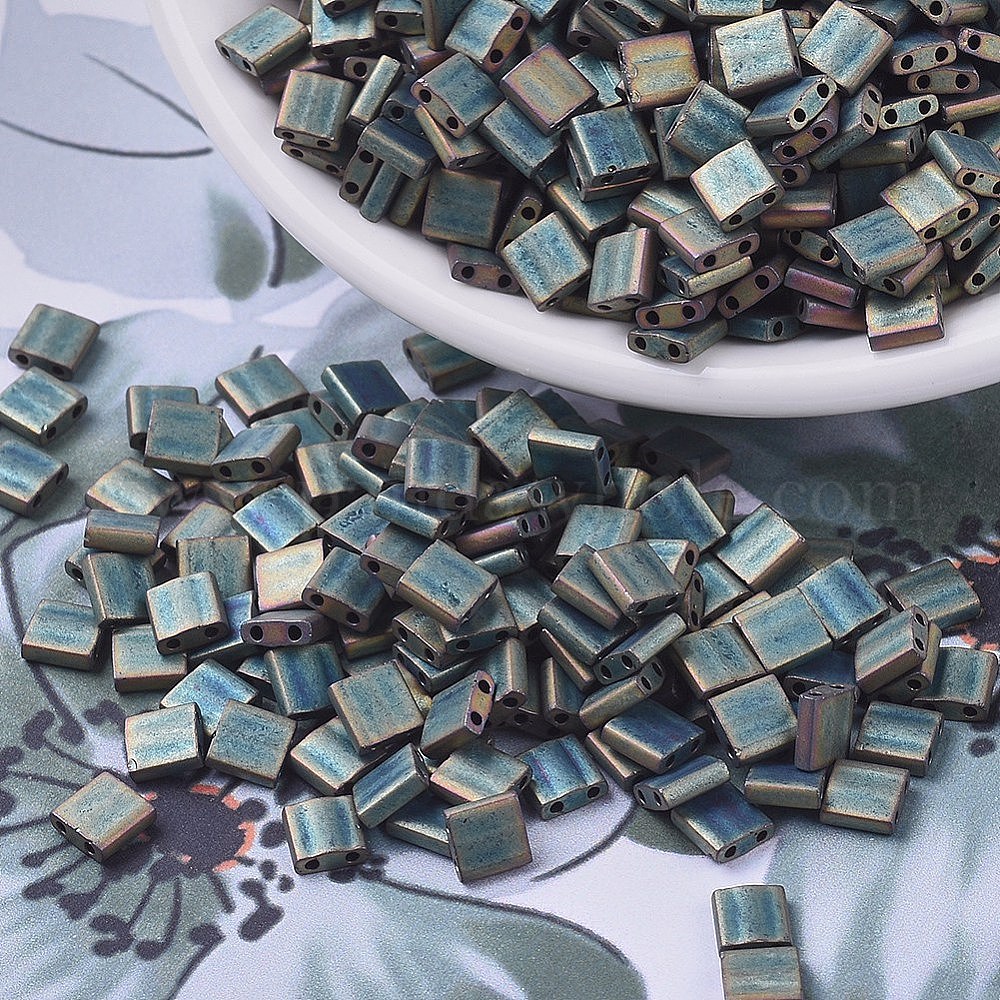• (TL2008) Матовый Металлический Патина Ирис Миюки тила бусины, японский бисер, 2-луночное, (тл 2008) матовый ирис с патиной, 5x5x1.9 мм, отверстие : 0.8 мм, Около 5900 шт / 500 г