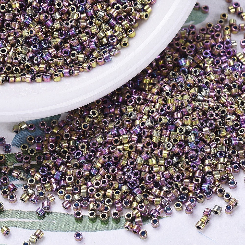 • (DB0546) Серебристый Золотой Ирис(с Палладиевым AB Покрытием) Бусины miyuki delica, цилиндр, японский бисер, 11/0, (db 0546) серебряный ирис (палладиевое покрытие ab), 1.3x1.6 мм, отверстие : 0.8 мм, Около 2000 шт / 10 г