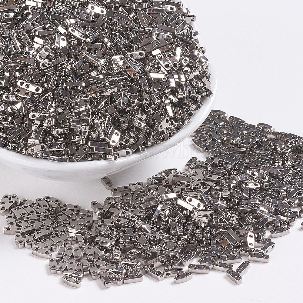 • (QTL190) Nickel Plated Миюки четверть бусины тила, японский бисер, 2-луночное, (qtl 190) никелированный, 5x1.2x1.9 мм, Отверстие : 0.8 мм , около 4800 шт / 100 г