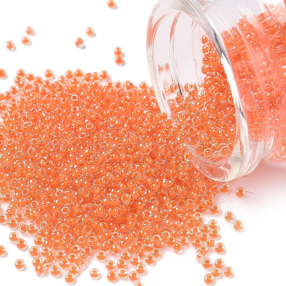 • (RR236) Orange Lined Crystal Миюки круглые бусины рокайль, японский бисер, (rr 236) кристалл с оранжевой окантовкой, 8/0, 3 мм, отверстие : 1 мм, Около 2111~2277 шт / 50 г