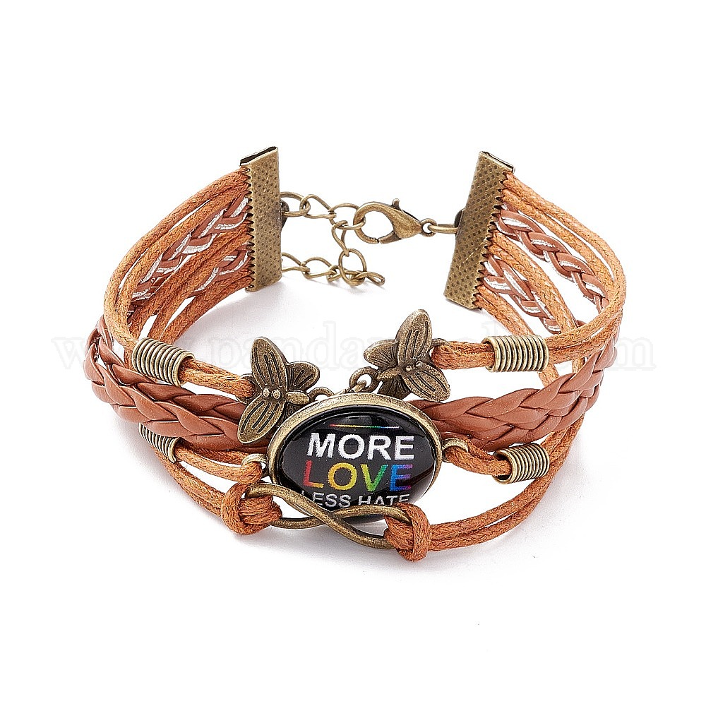 • Слово Браслет радужной гордости, Многожильный браслет с плоскими круглыми звеньями и бабочками для мужчин и женщин, цвет шоколада, слово, 7-1/4 дюйм (18.5 см)