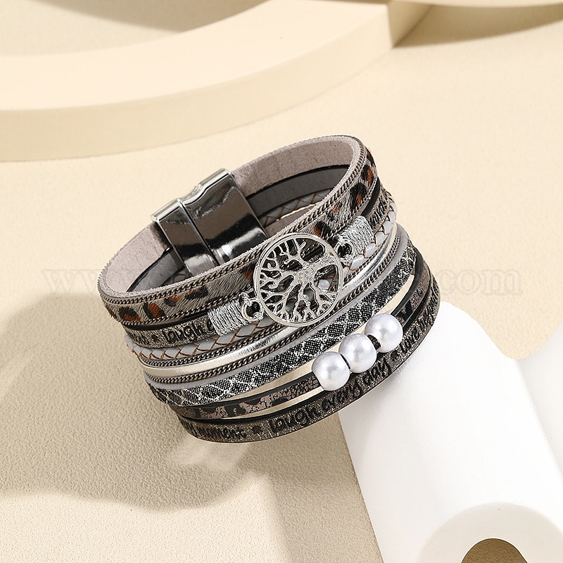 Многожильные браслеты из искусственной кожи с звеном «Древо жизни», с магнитной застежкой