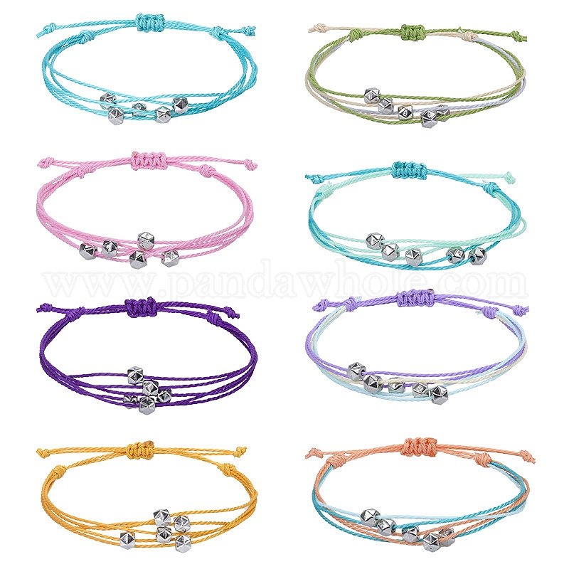 Браслеты из многожильных бусин из вощеного шнура в стиле бохо, регулируемые женские браслеты из полигональных бусин