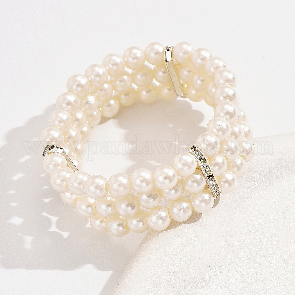 Элегантные трехслойные браслеты из пластика с имитацией жемчуга, с многониточными звеньями из сплава и стразами