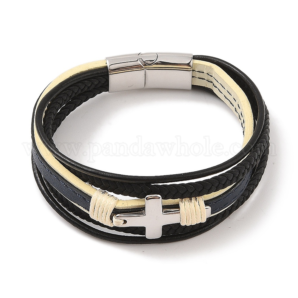Плетеные браслеты из микрофибры и кожи, многорядные, 304 браслеты-кресты из нержавеющей стали для мужчин (02WXGQ)