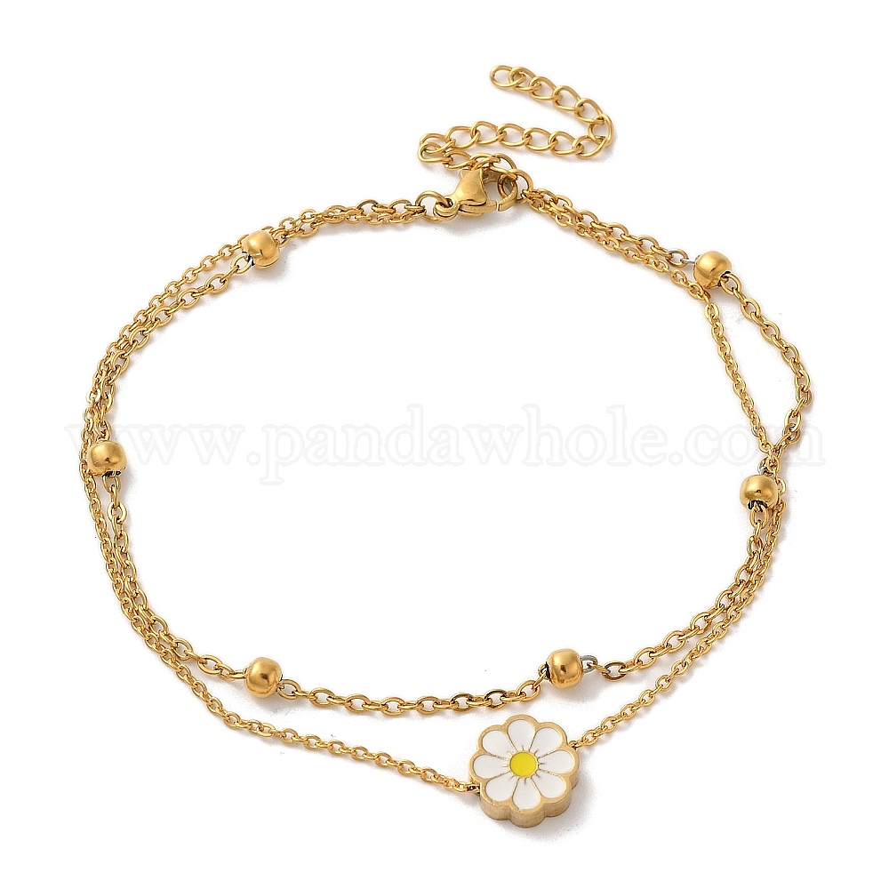 Ионное покрытие (ip) 304 нержавеющая сталь 2 браслеты из двух цепочек, цветок шарм браслеты, застежка когтя омара