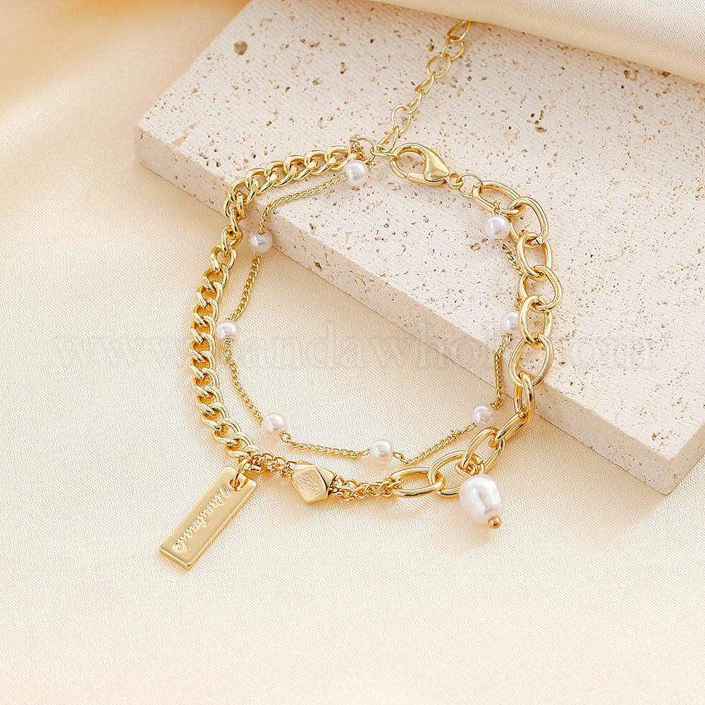 Многорядные браслеты с подвесками из сплава, браслеты из кубинских цепей и цепочек cbale для женщин, с имитацией жемчужина бисера, прямоугольные