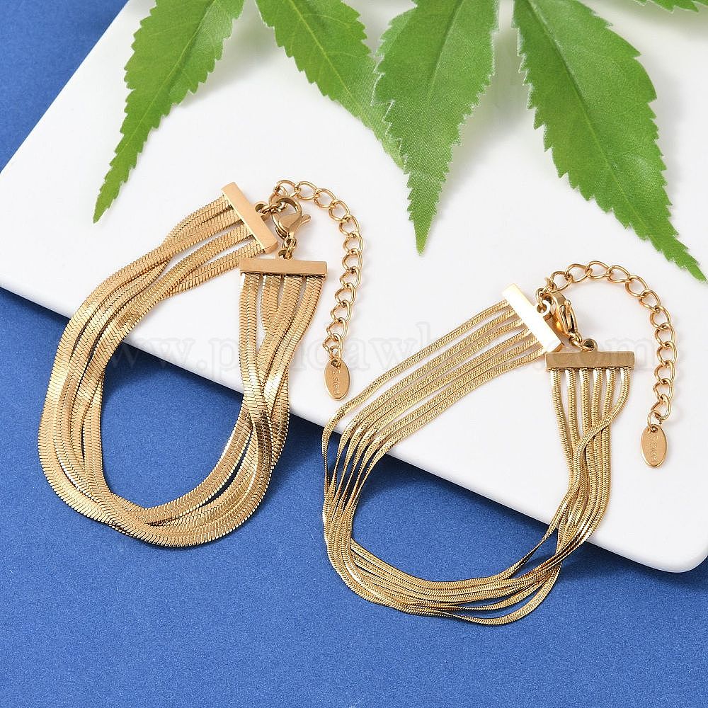 • Настоящее золото 18K 304 многорядные браслеты-змейки из нержавеющей стали для женщин, реальный 18 k позолоченный, 6-3/4 дюйм (17 см)