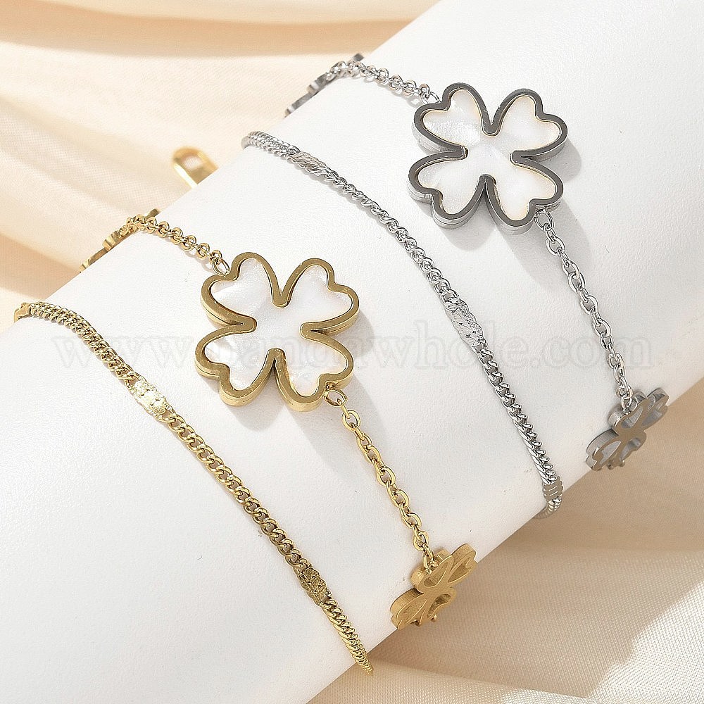 304 многорядные браслеты из нержавеющей стали с подвеской из ракушки и жемчуга, браслеты из цепочек и кабелей для женщин, клевер амулеты