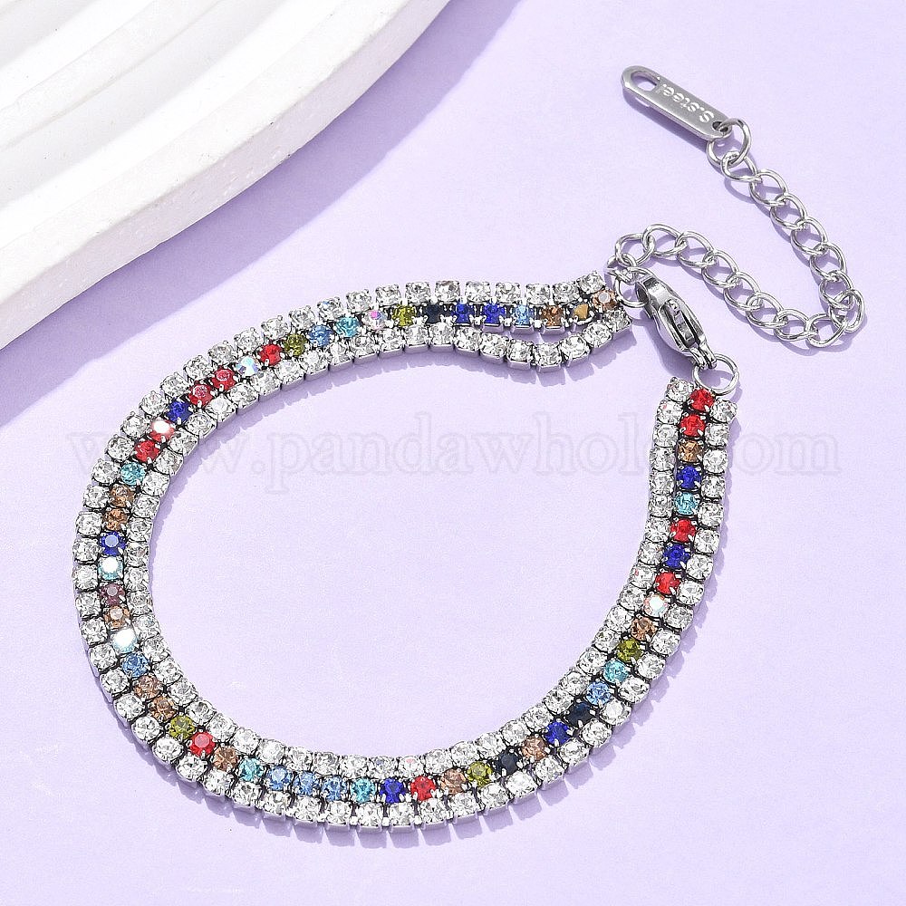 304 из нержавеющей стали браслеты многожильных, браслеты-цепочки со стразами для женщин