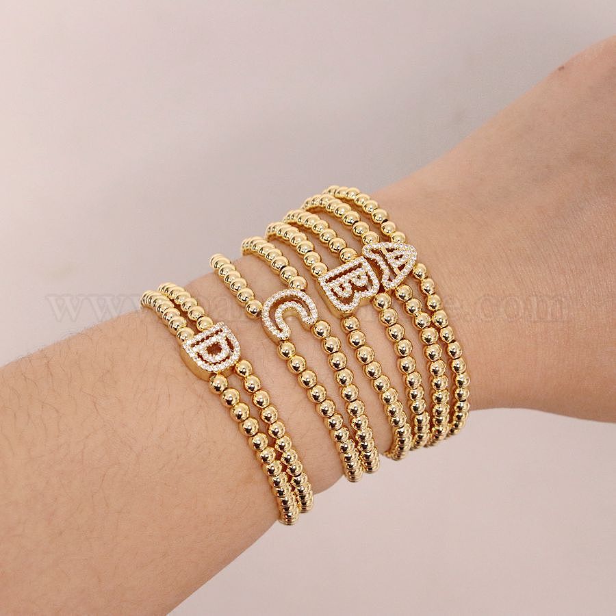 Браслеты из латуни с микропаве из прозрачных кубических циркониевых бусин, двойные нити, эластичные, для женщин, буква и круг, золотые