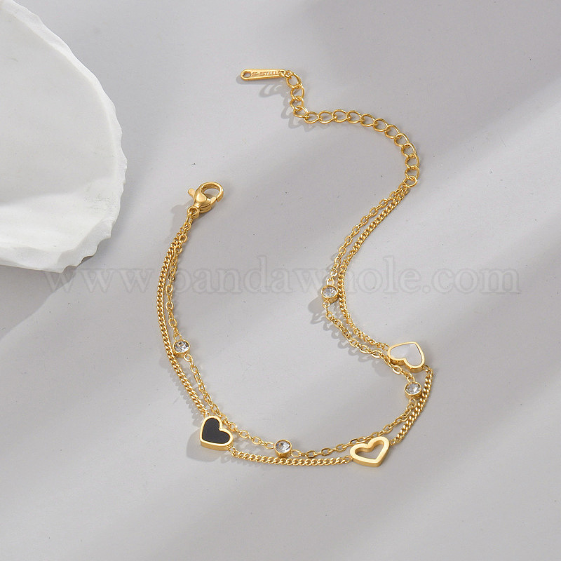304 браслеты из нержавеющей стали, кубического циркония и акрила с двойной нитью, браслеты для женщин, сердце