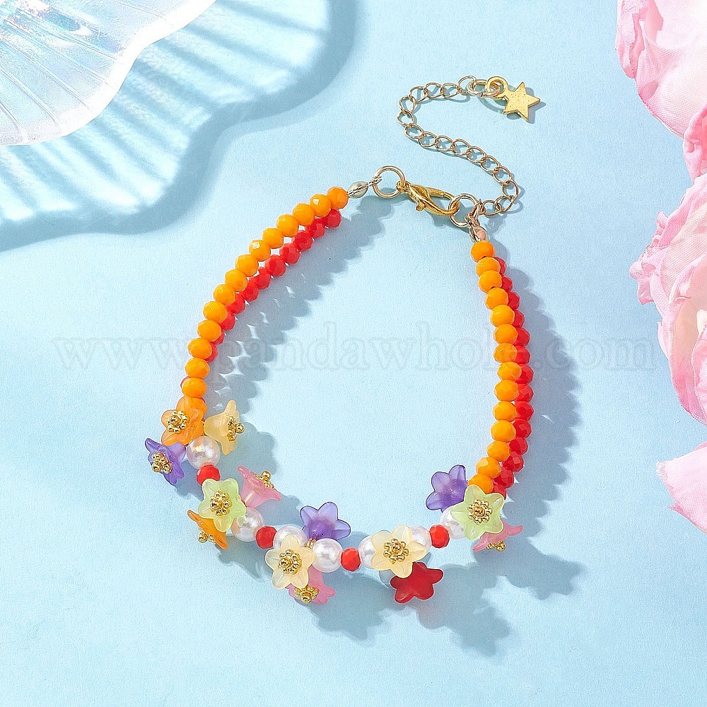 • Разноцветный Многорядные браслеты из непрозрачного однотонного стекла и акрила, вышитый бисером браслеты для женщин, цветок, красочный, 7-3/4 дюйм (19.8 см)