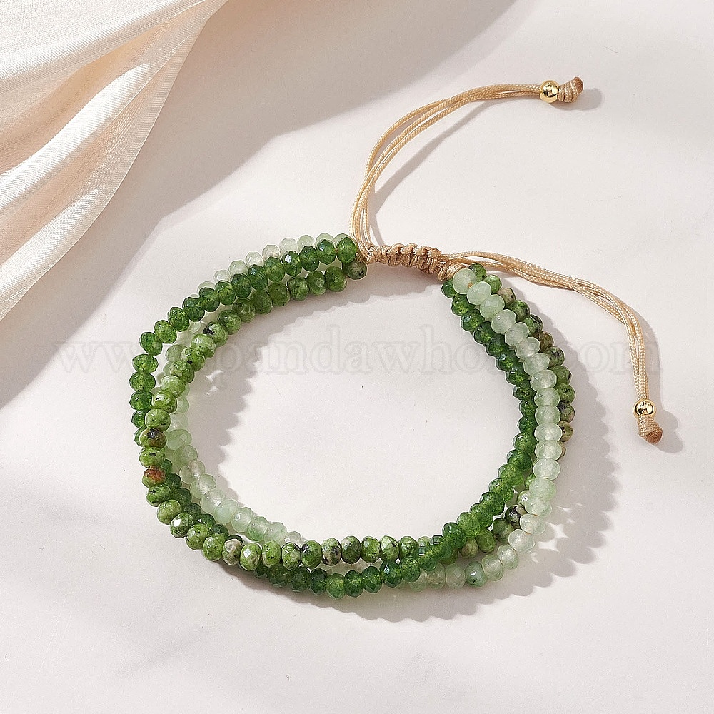 Регулируемые многорядные браслеты из окрашенного натурального малазийского нефрита с бусинами для женщин и мужчин., рондель
