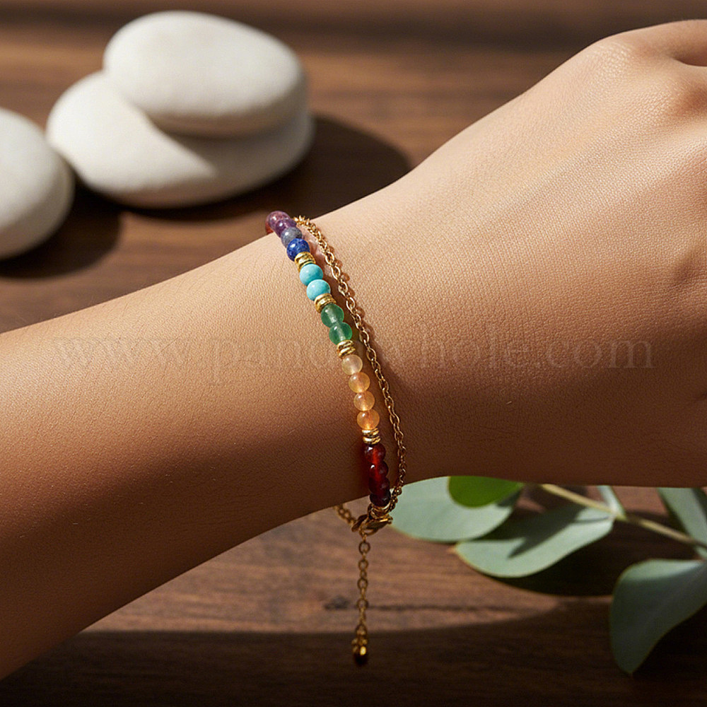 7 Браслет из круглых бусин с синтетической бирюзой, натуральным лазуритом и карнеолом, украшенный чакрами, двухслойный., 304 женские браслеты-цепочки из нержавеющей стали