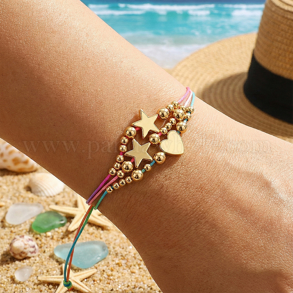 Регулируемый многослойный браслет из латуни в форме звезды и сердца с бусинами для женщин.