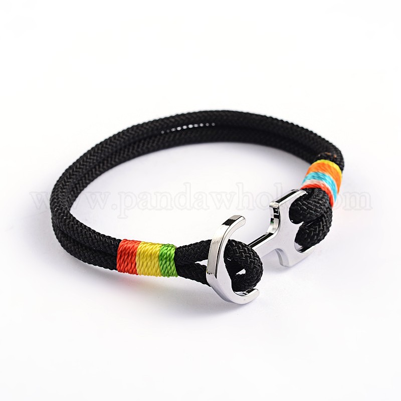 Многонитевые браслеты из вощеного шнура, с якоря сплава застежками, платина, 210x8x3.5 мм